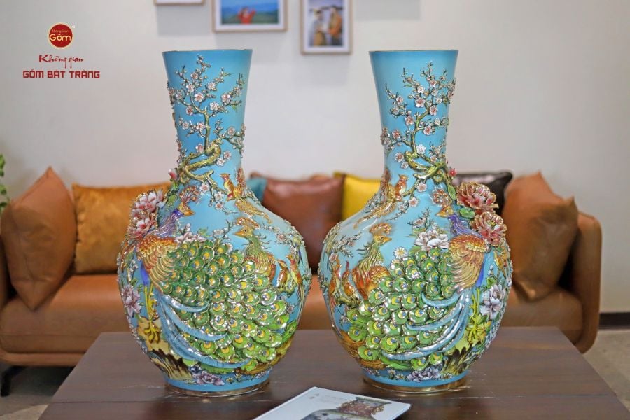 Bình gốm tài lộc Bát Tràng là một vật trang trí được nhiều người yêu thích vì vẻ đẹp sang trọng, hoa văn tinh xảo và có sức hút đặc biệt. Khi đặt bình gốm tài lộc trong nhà, sẽ mang lại cho gia chủ không chỉ may mắn và hạnh phúc mà còn sự thịnh vượng về tài lộc. Các sản phẩm bình gốm tài lộc cao cấp tại Không Gian Gốm được làm hoàn toàn thủ công bởi nghệ thuật đắp nổi và vẽ vàng cao cấp. Họa tiết hoa văn tinh tế mang đậm ý nghĩa nhân văn và phong thủy sâu sắc. Điều này giúp cho bình gốm trở thành một điểm nhấn hút tài lộc cao cấp trong không gian sống, mang lại cảm giác thịnh vượng, phú quý và bình an.